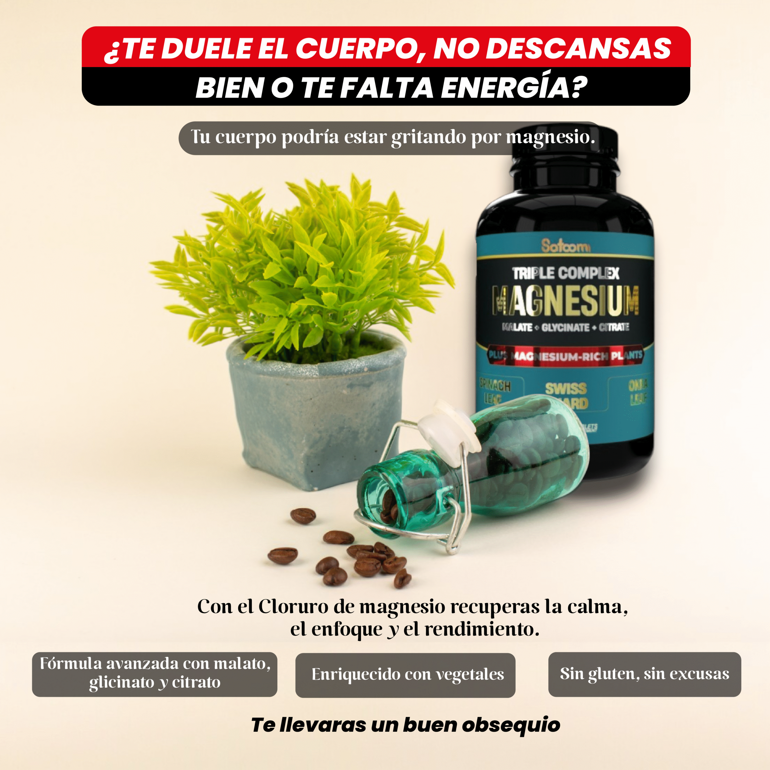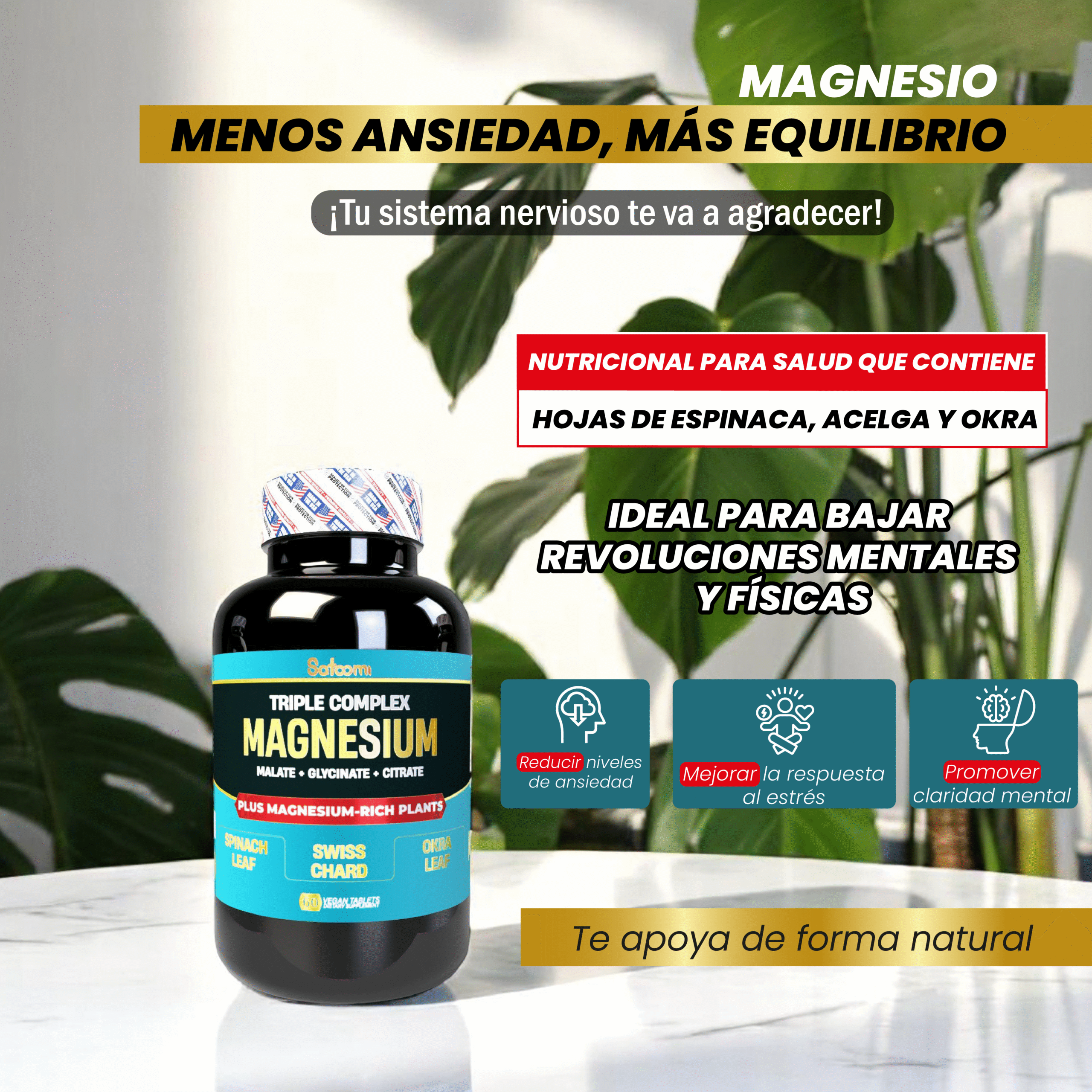 • Contiene 3 formas de magnesio de alta biodisponibilidad.